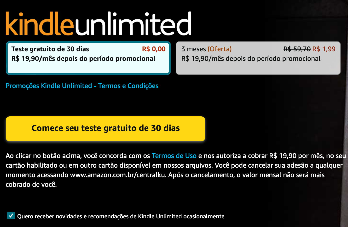 Mas espera, tem mais! Para quem adora uma boa oferta, a Amazon está com a "BookFriday" rolando. Se você aproveitar essa promoção incrível, poderá adquirir o Kindle Unlimited por apenas R$ 1,99 e desfrutar da versão digital de "Novus: Uma História de Valentia - Parte 1" gratuitamente durante três meses! É uma oportunidade que não dá pra perder, né?